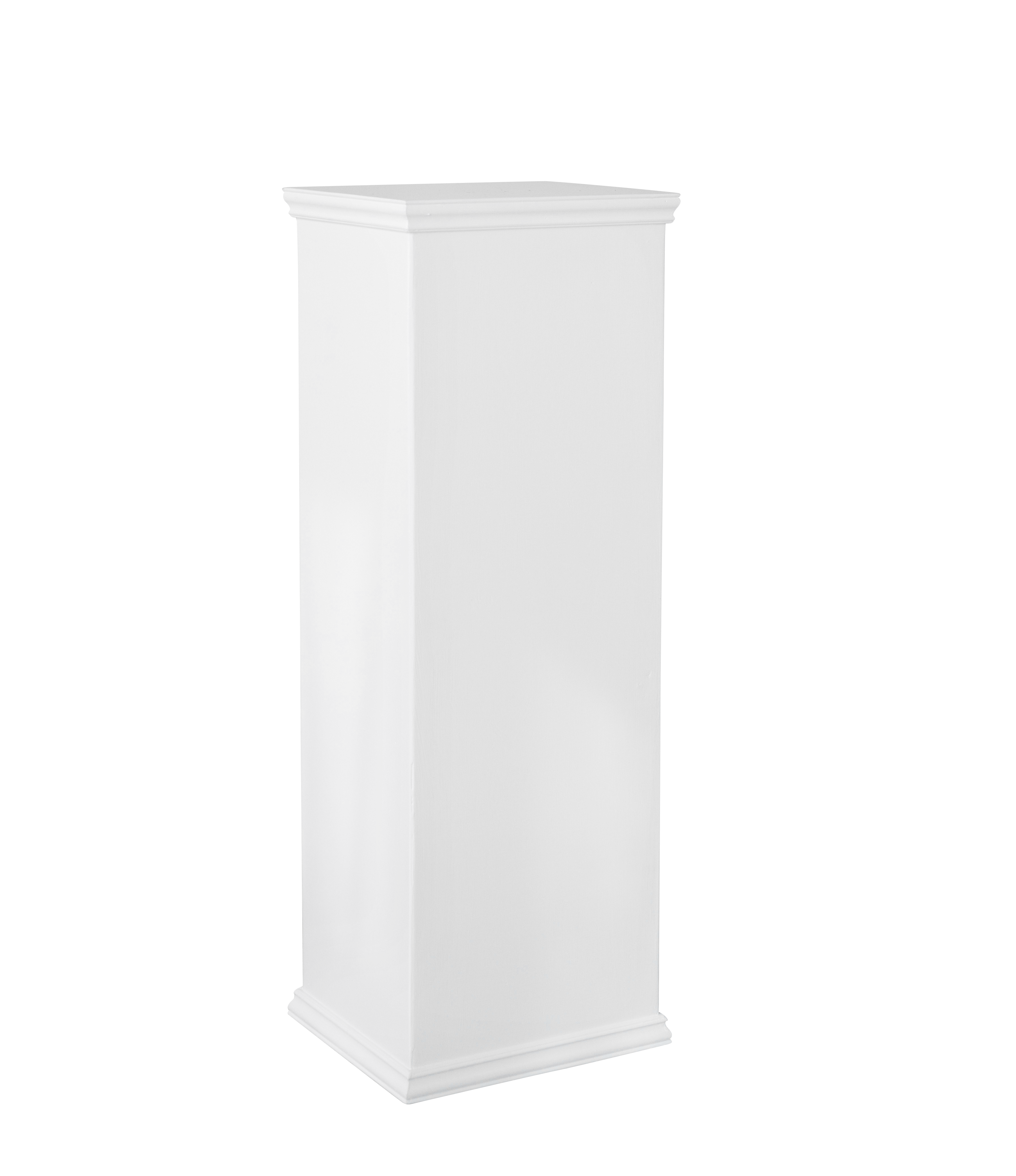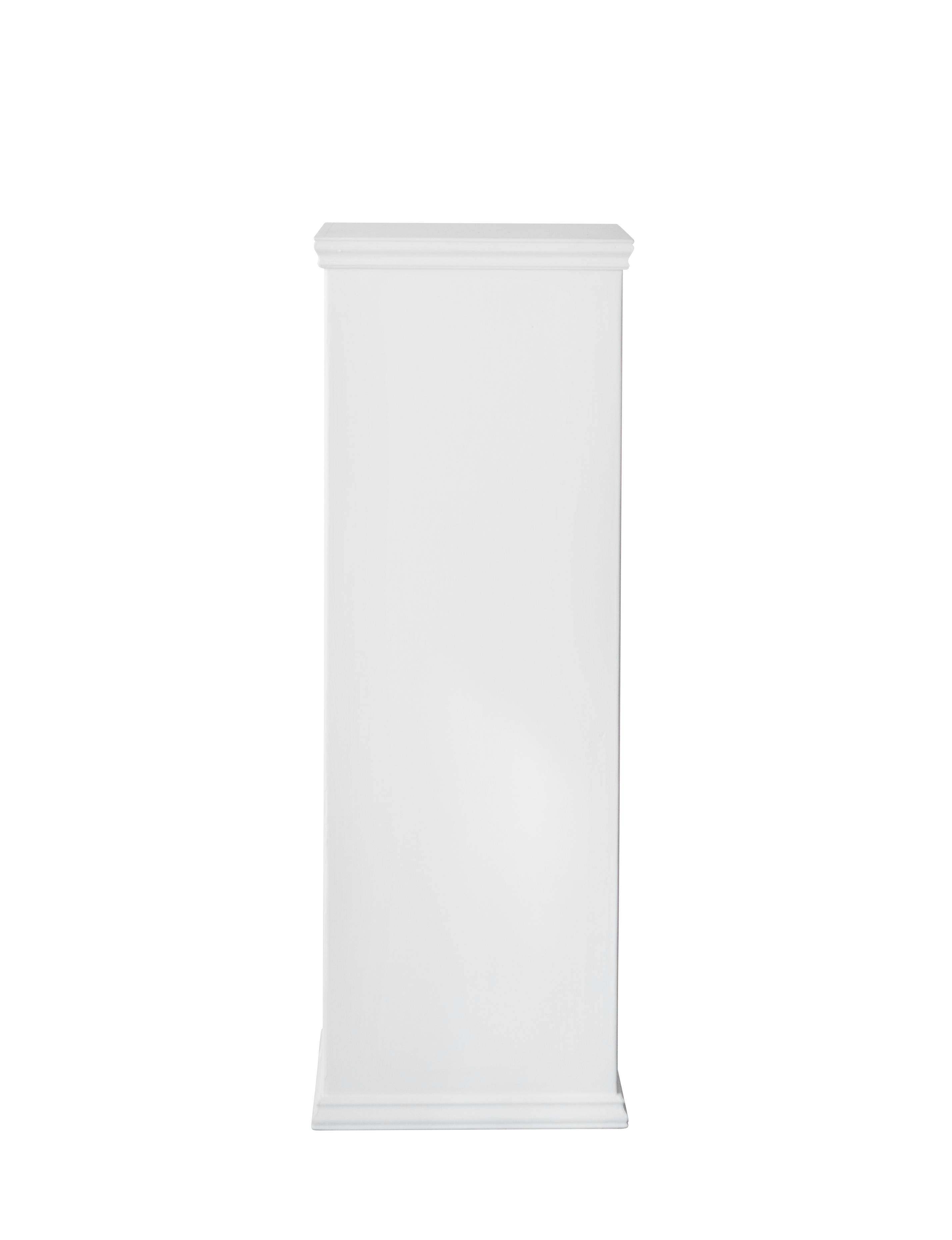 Description: White wood pedestal with trim.